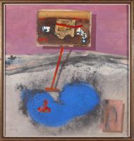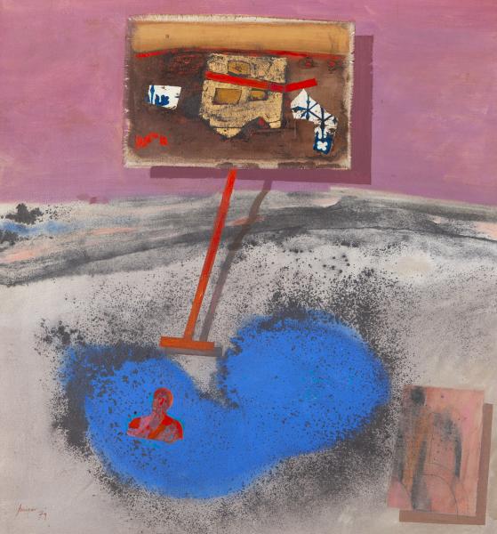 Oil, graphite and collage on canvas on board
