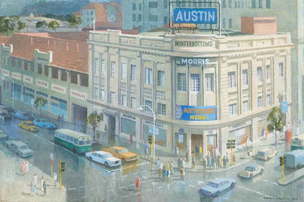 This 1972 oil painting depicts the Winterbottom Motors building at the