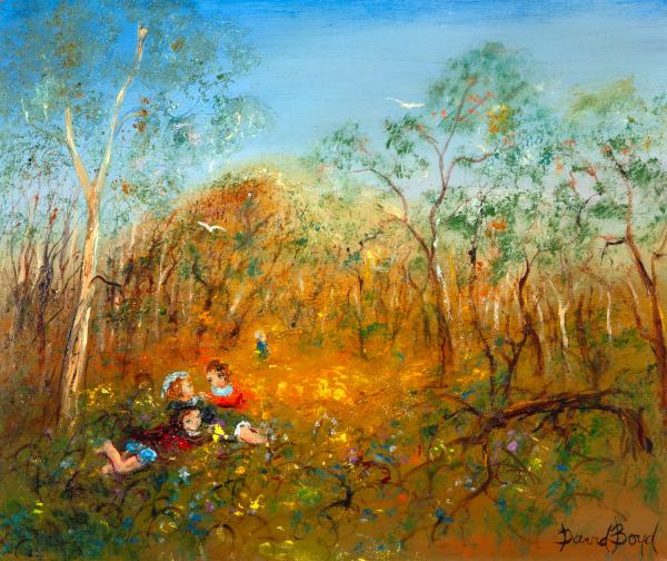 CHILDREN PLAYING AMONG THE WILDFLOWERS