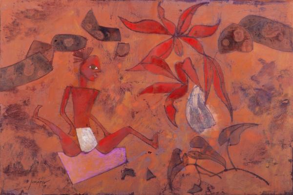 SEATED LADY WITH BOAB BLOSSOM
