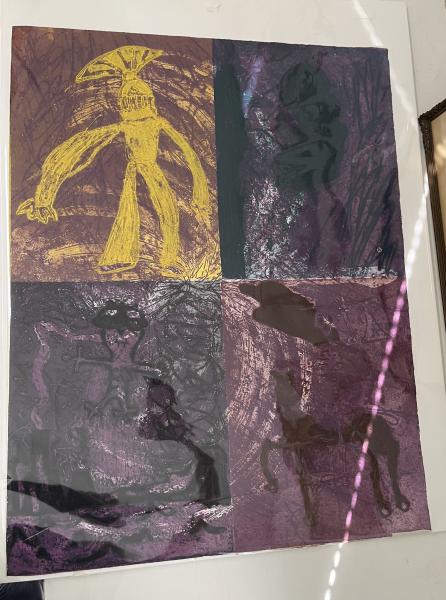 Inscribed verso - In collaboration with my sons Daen (8) and Borun (7) A celebration of our influences and our Aboriginality