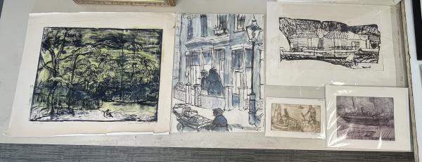Watercolour, etching and lithograph