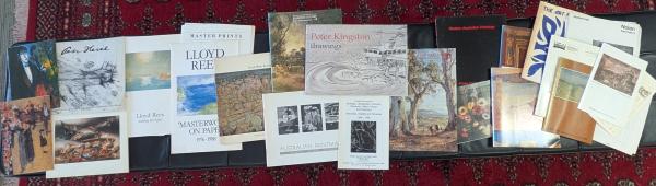 Including Lloyd Rees Retrospective, Diggins Catalogue, Peter Kingston Drawings, Heysen brochure AGSA