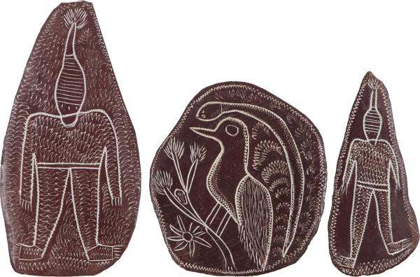 GWION FIGURES, BUSH TURKEY AND SNAKE (3) c.1980