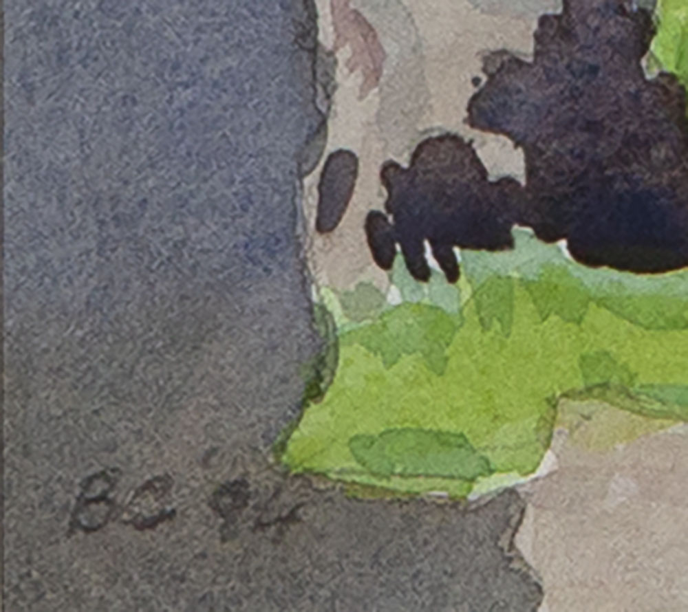 This artwork is in excellent original conditon, colours are strong and vibrant. This artwork has been framed behind glass and has not been removed for inspection.