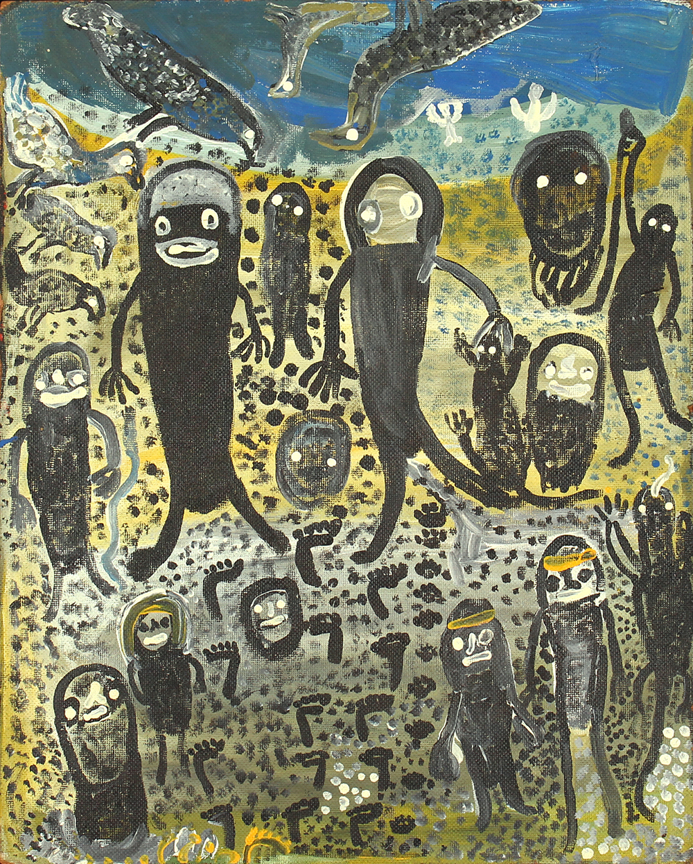 PEOPLE WITH THEIR DOG AND BIRDS IN FOREST